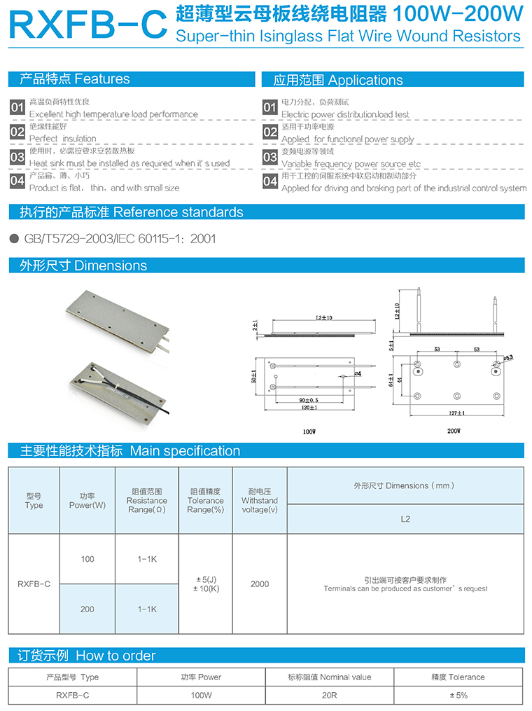 RXFB-C超薄型云母板线绕电阻器